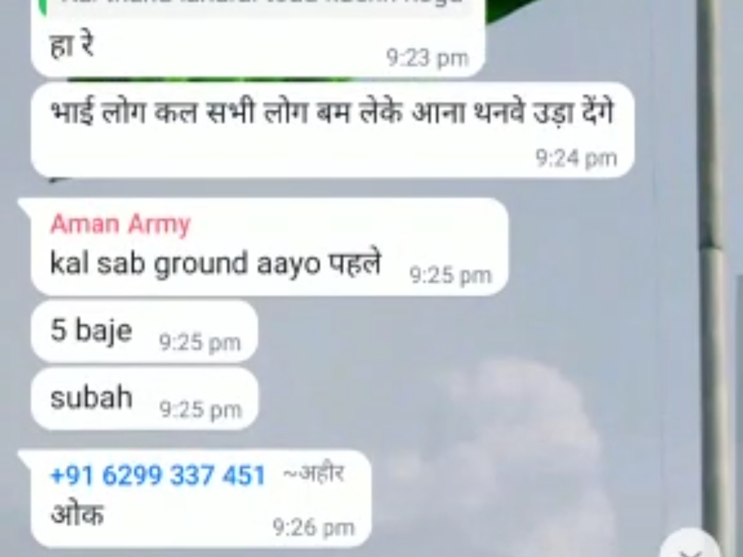 नवादा में अग्निपथ स्कीम के विरोध के दौरान नवादा जिले के रजौली थाना को उड़ाने की साजिश रची गई। एक वाट्सएप ग्रुप में इससे सम्बंधित चैटिंग हुई है, जो सोशल मीडिया पर वायरल हो रही है। थाने को बम से उड़ाने, प्रदर्शन में लाठी डंडे के साथ ही पिस्तौल और AK 47 लाने की चर्चा उस ग्रुप में की गई है। इसको लेकर पुलिस अलर्ट हो गई है।