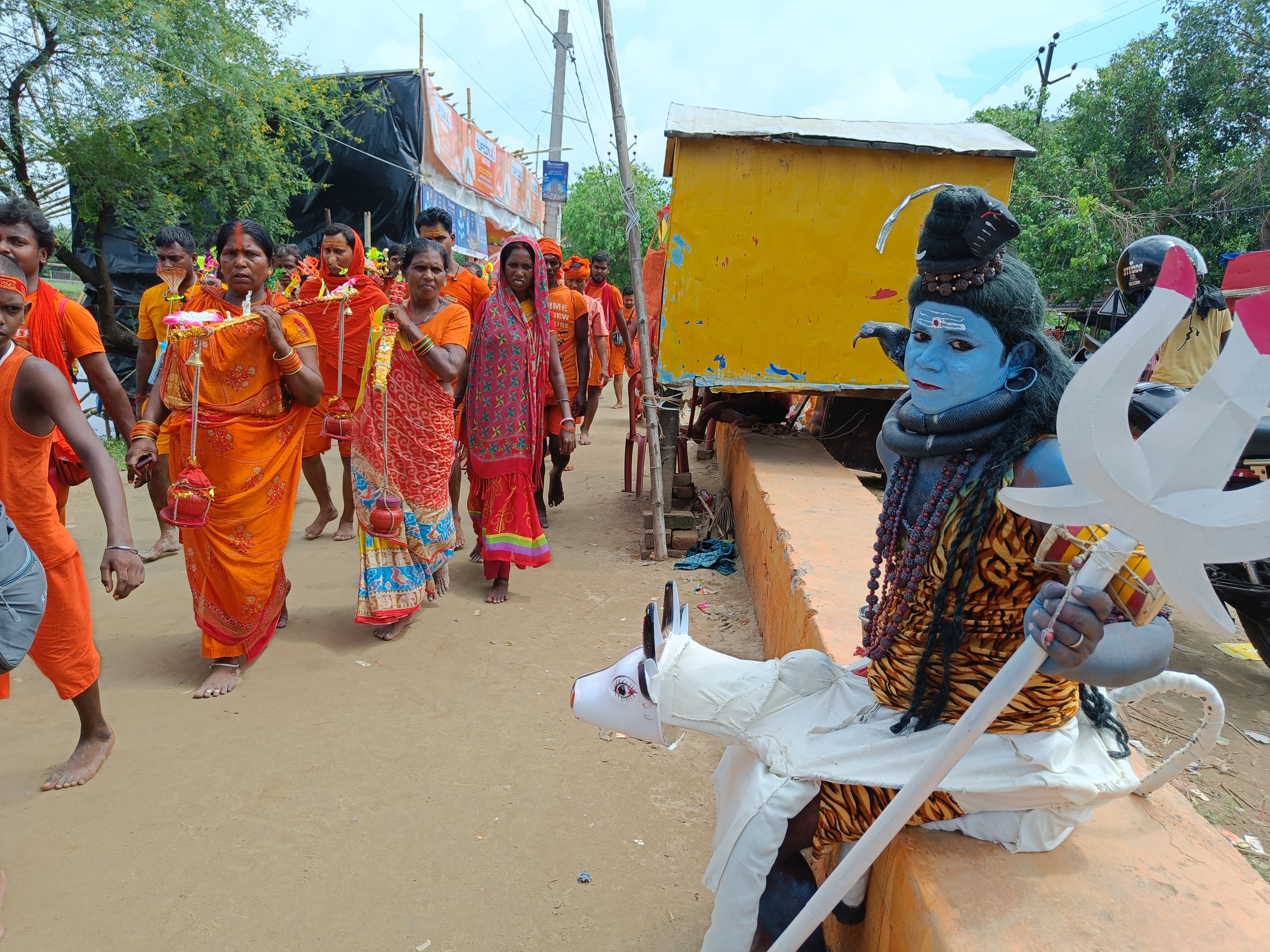 दरअसल, भगवान भोलेनाथ का रूप का अवतार बनकर सुल्तानगंज के शिवनंदन पुर के कृष्णा कुमार हैं कृष्णा कुमार बचपन से ही भगवान शिव का रूप बनाकर रंगमंच की कलाकारी भी करते हैं। स्कूल के दिनों में भी कृष्ण शिव का रूप धारण करते थे, पिछले 2 सालों से कोरोना के कारण कुछ नहीं कर पाए कृष्णा बताते हैं कि श्रावणी मेला को लेकर प्रतिदिन इन्हें ₹2000 मिल जाते हैं, जो इनकी कमाई हो जाती है।