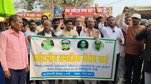 मुजफ्फरपुर के औराई प्रखंड के स्थित भैरव स्थान से भाजपा विधायक रामसूरत राय के खिलाफ सर्वदलीय सामाजिक विरोध मार्च निकाला गया।