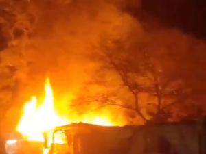 नगर पंचायत के मछही गांव के नथुनी सिंह के बंद घर में रविवार की रात भीषण आग लग गई। इस दौरान सिलेंडर विस्फोट से अफरा-तफरी मच गई।