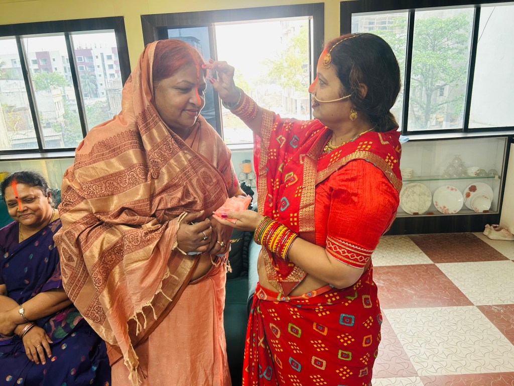मुजफ्फरपुर: चैती छठ महापर्व के शुभ अवसर पर वरिष्ठ पत्रकार महेश प्रसाद सिन्हा की छोटी बहू भावना स्वाति के संतोष कुटी, मझौलिया रोड स्थित निवास पर शहर के कई गणमान्य लोग पहुंचे और छठ पर्व की शुभकामनाएँ दीं। इस दौरान मुजफ्फरपुर की मेयर निर्मला साहु, असर्फी गोल्ड ब्रांड के CEO शिवशंकर प्रसाद साहु, भाजपा के जिला अध्यक्ष विवेक कुमार समेत शहर के अन्य प्रतिष्ठित लोग उपस्थित रहे।