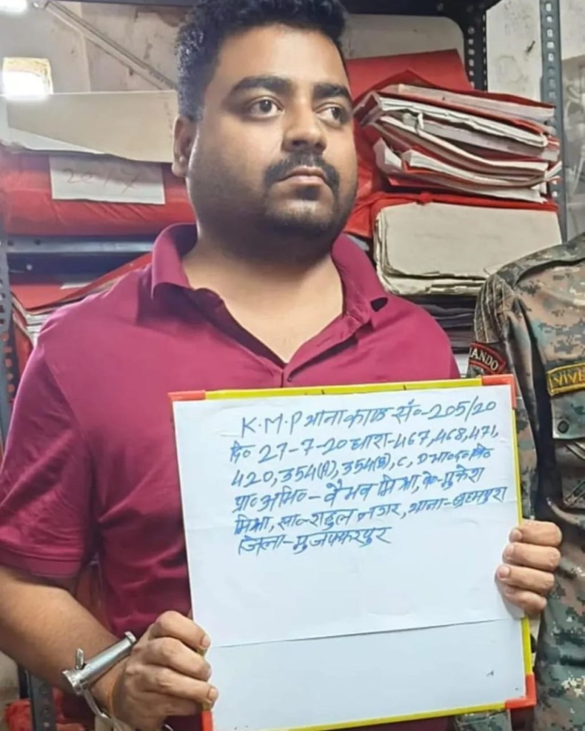 पुलिस सूत्रों के अनुसार, वर्ष 2020 में एक युवती को ब्लैकमेल करने के आरोप में काजीमोहम्मदपुर थाना में वैभव मिश्रा के खिलाफ FIR दर्ज की गई थी। इस मामले में लंबे समय से फरार चल रहे मिश्रा की तलाश जारी थी।
