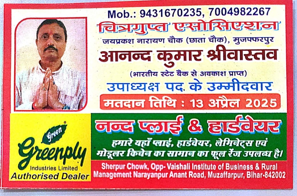 मुज़फ़्फ़रपुर: चित्रगुप्त एसोसिएशन का चुनाव इस बार बेहद दिलचस्प मोड़ पर पहुंच गया है। एसोसिएशन के चार महत्वपूर्ण एकल पदों—अध्यक्ष, महामंत्री, संगठन मंत्री और कोषाध्यक्ष—के लिए मुकाबला न केवल रोचक हो गया है बल्कि मतदाताओं के रुझानों से इस बार बड़े बदलाव के संकेत भी मिल रहे हैं।