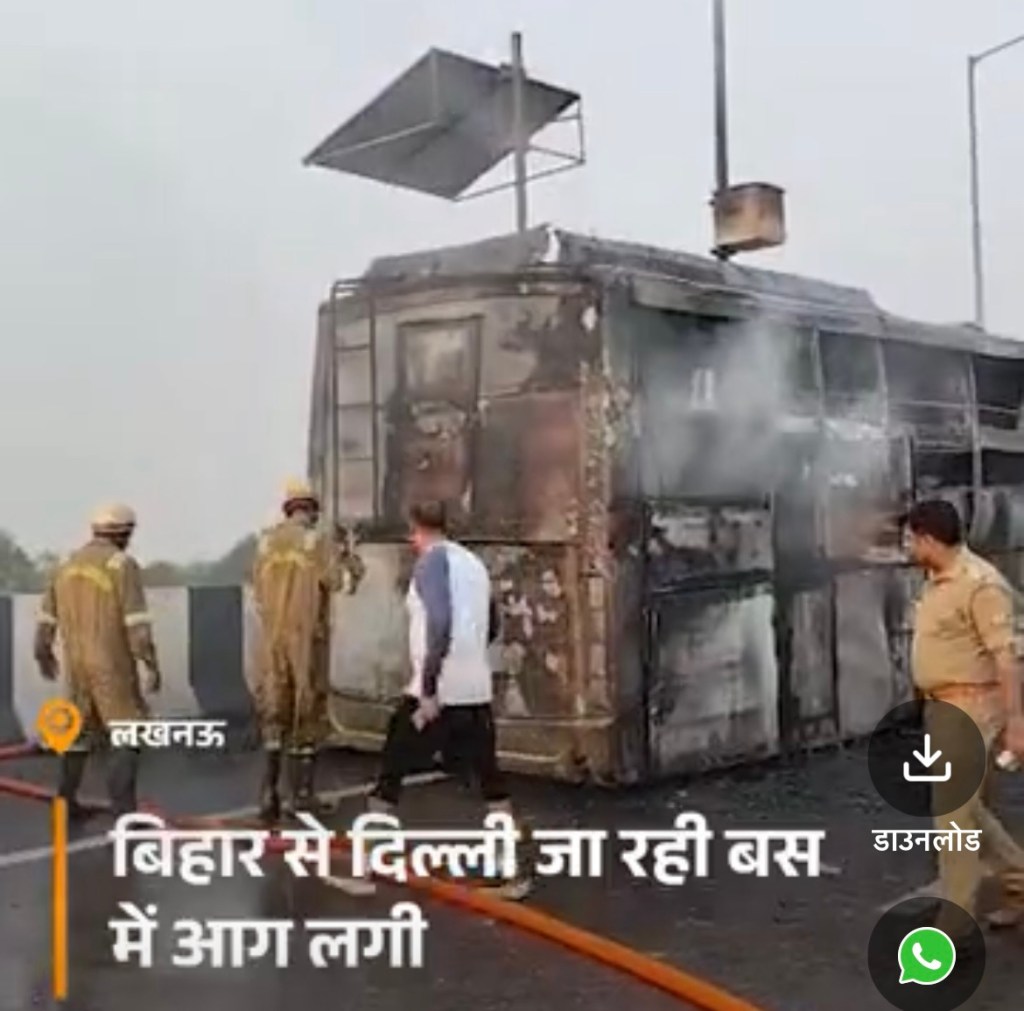 लखनऊ: गुरुवार सुबह एक बड़ा सड़क हादसा उस वक्त हो गया जब बिहार से दिल्ली जा रही एक प्राइवेट स्लीपर एसी बस लखनऊ के आउटर रिंग रोड (किसान पथ) पर अचानक आग की चपेट में आ गई। इस भयावह हादसे में 5 यात्रियों की जलकर दर्दनाक मौत हो गई, जबकि कई यात्री गंभीर रूप से घायल हो गए हैं। मृतकों में दो बच्चे, दो महिलाएं और एक पुरुष शामिल हैं।