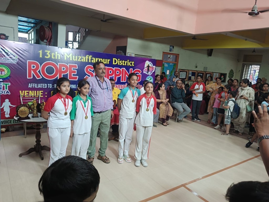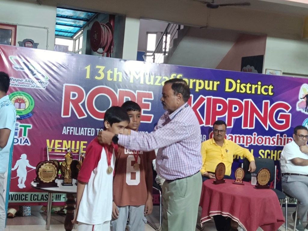 मुज़फ़्फ़रपुर। जी.डी. मदर इंटरनेशनल स्कूल में आयोजित अंतर-विद्यालयीय रोप स्किपिंग प्रतियोगिता में सेंट जेवियर इंटरनेशनल स्कूल के विद्यार्थियों ने शानदार प्रदर्शन करते हुए विद्यालय का नाम रोशन किया।