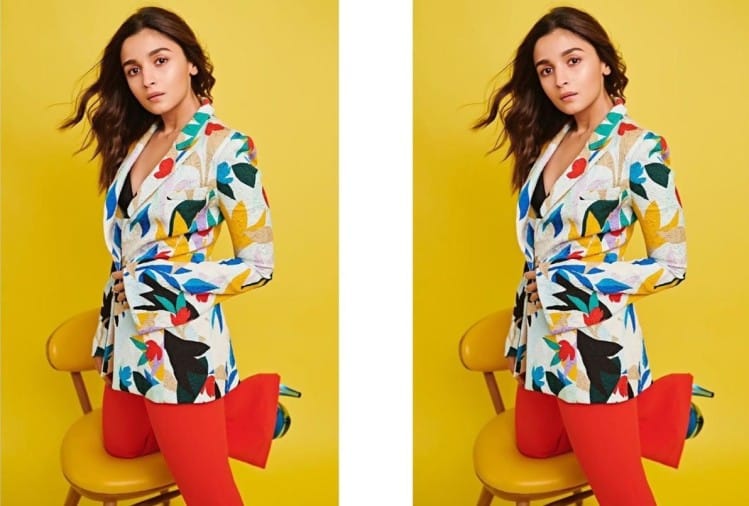 सफेद रंग के रंग-बिरंगे ब्लेजर में आलिया नजर आ रहीं है। इस ब्लेजर को प्रबल गौरंग ने डिजाइन किया है।